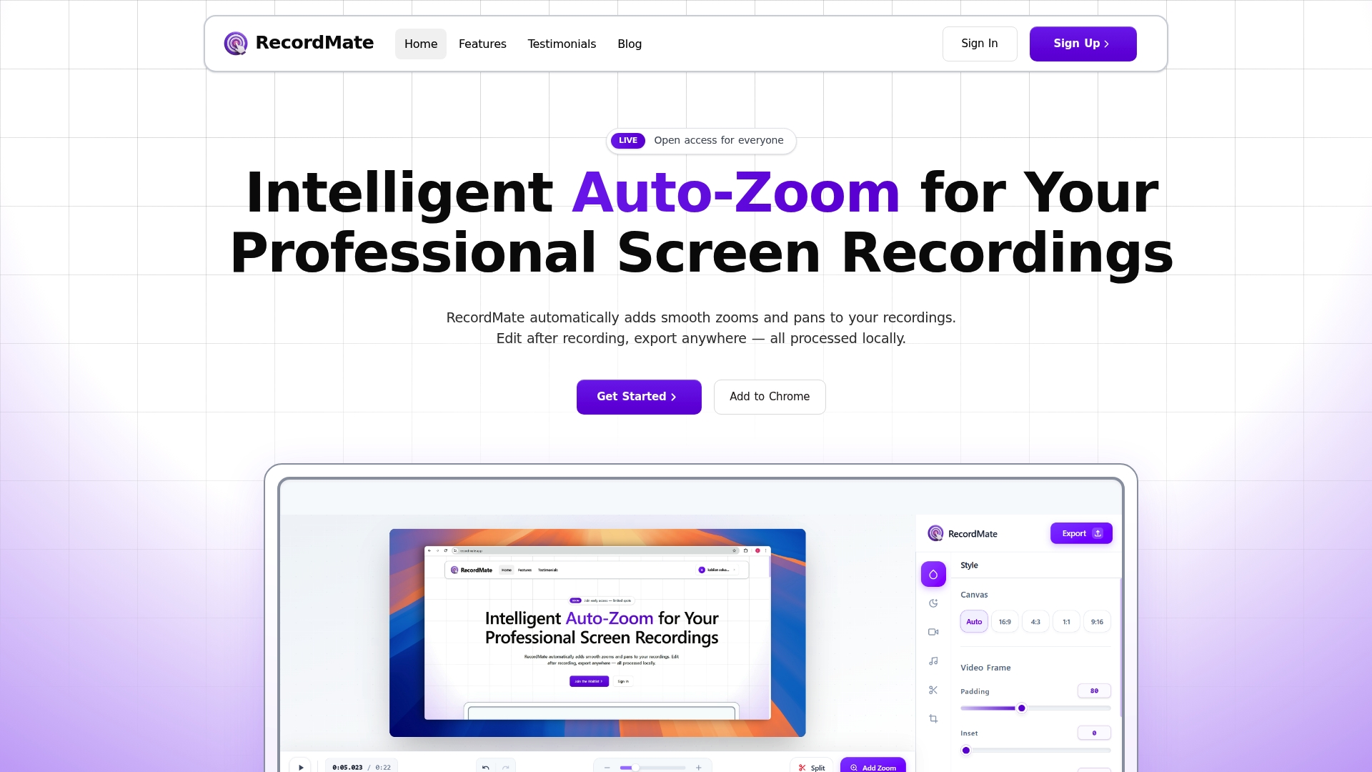 | RecordMate | Tutorial and demo creators | Auto zoom and panning | Local processing |